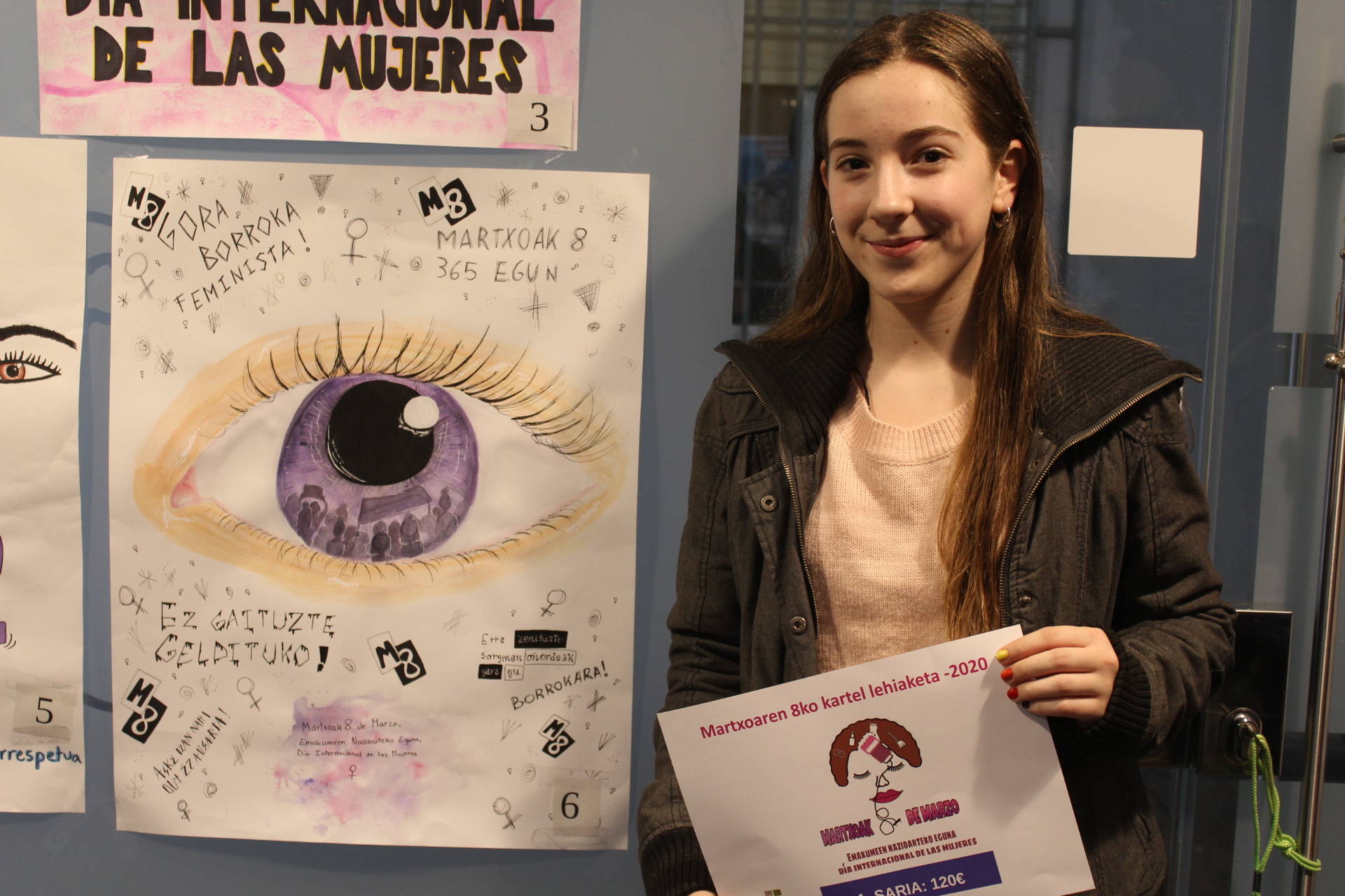 Irabazleak 120 euroko saria jasoko du, 90ekoa bigarrenak eta 60koa hirugarrenak. Amaia Mazkiaran gazteak irabazi zuen lehiaketa iaz; hark egindako lanak iragarriko du aurtengo Martxoaren 8a.