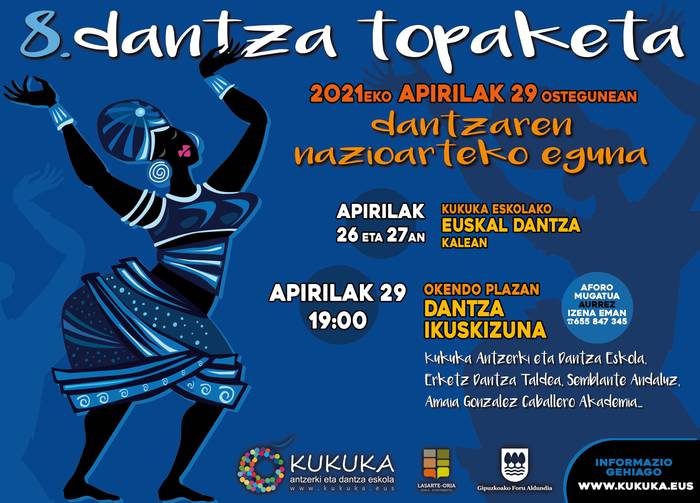 Aste honetako ostegunean, apirilak 29, mundu mailan ospatuko da dantzaren eguna, baita Lasarte-Orian ere. Zortzigarrenez, topaketak antolatu ditu Kukuka antzerki eta dantza eskolak, Lasarte-Oriako Udalaren eta Gipuzkoako Foru Aldundiaren laguntzarekin. Egun horretan, herriko eragile ugarik emanaldiak eskainiko dituzte Okendo plazan, 19:00etatik aurrera. Beharrezkoa da aurrez izena ematea, 655 84 73 45 telefono zenbakian. Motorrak berotze aldera, gaur eta bihar Oriarte Landaberriko patioan egingo dituzte klaseak ikasle-taldeek.