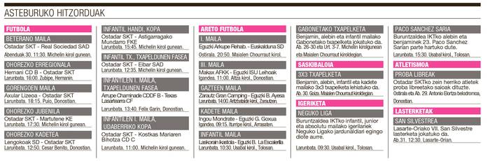 Hilaren 23an eta Eguberrietan Lasarte-Orian izango diren kirol hitzorduak: