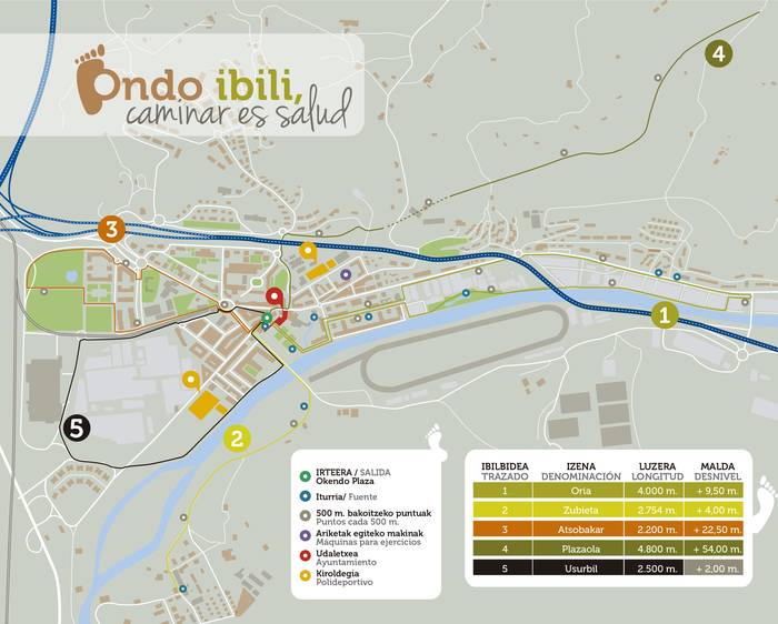 Hala, antolatzaileek azaldu dute programak askotariko mailetako hainbat ibilbide eskaintzen dituela: distantziari dagokionez, motzena Atsobakarreko ibilbidea izendatu dutena da (2.200 metro), eta luzeena, aldiz, Plazaolakoa (4.800 metro). Hala, abertitu dute ibilaldia abiatu eta 500 metrotik behin, seinaleak, iturriak eta ariketak egiteko makinak dituzten guneetara iritsiko direla.