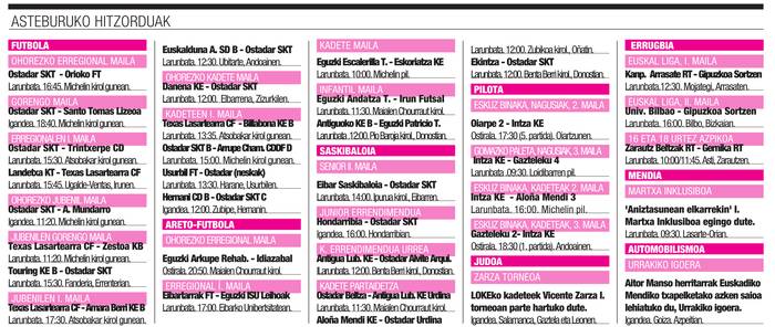 Asteburuko kirol agenda