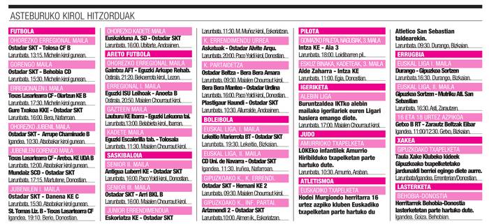 Asteburuko kirol agenda