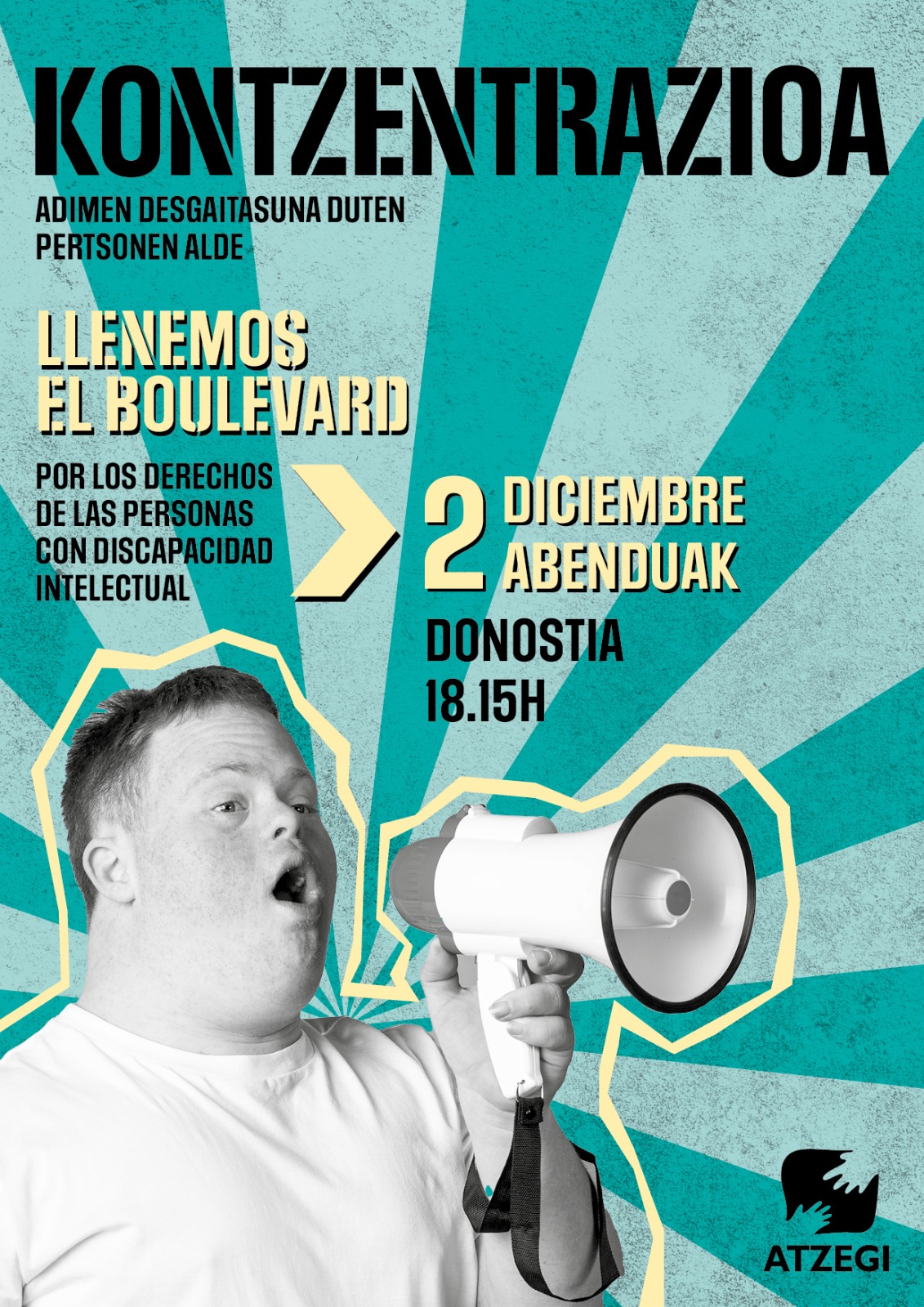 Adimen desgaitasuna duten pertsonen alde Donostiako Bulebarra betetzeko deia egin dute eragile horretako kideek. Abenduaren 2an kontzentrazioa egingo dute bertan, 18:15ean, eta geroago, 19:00etan, ekitaldi nagusia aurrera eramango dute Antzoki Zaharrean. Atzegik Lasarte-Orian dituen ordezkariek egitasmo horrekin bat egitera gonbidatu dituzte herritarrak.
