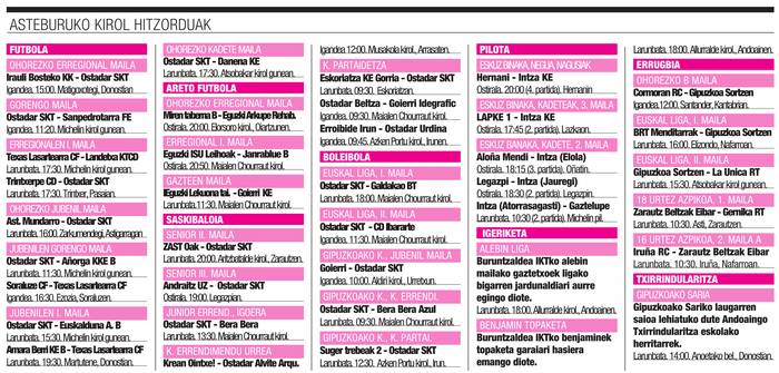 Azaroako azken asteburuko kirol hitzorduetako batzuk: