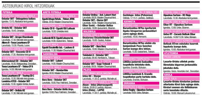 Asteburuko kirol agenda