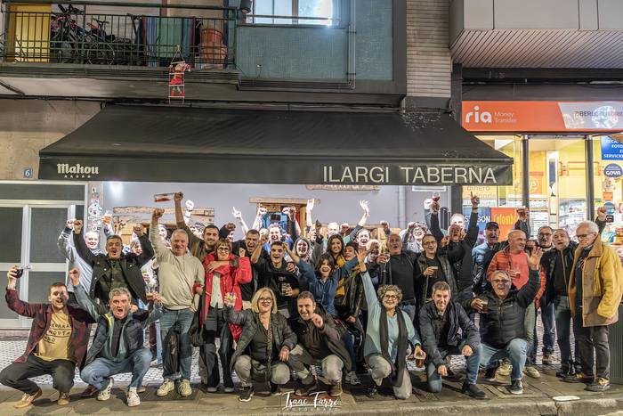 Bazkalostean jarraitu zuten parranda, Ilargi tabernan. Non bestela? Garagardo, konbinadu, ardo edota sagardo, etapa garrantzitsu baten itxiera ospatu zuten, hurrengo faseari ongietorria egitearekin batera. Hori baita bizitza honetako gauza politena: bukaera guztiek (edo ia guztiek) hasiera berri eta ilusionagarriak dakartzatela beraiekin. Zuengatik topa egiten jarraituko dugu Edorta eta Lore, besoetako minagatik kopak eta edalontziak altxatzeko gai ez izatera iritsi arte. Eskerrik asko, bikote!