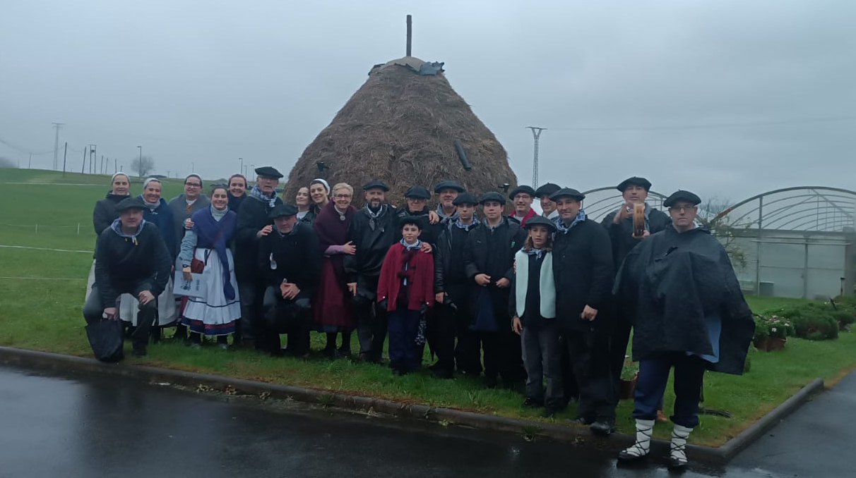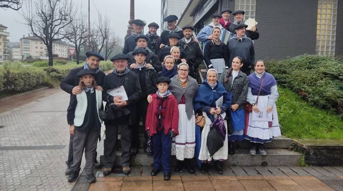 Eragile bat baino gehiagoko kideek jantzi dituzte baserritar jantziak eta kantuan atera dira gaurko egunean. Horien artean, Erketz EDTko lagunak. Sasoeta auzoan duten lokal atarian elkartu dira, talde argazkia atera dute eta herri erdigunetik baserrietara abiatu dira, Gabon kantak abestera.