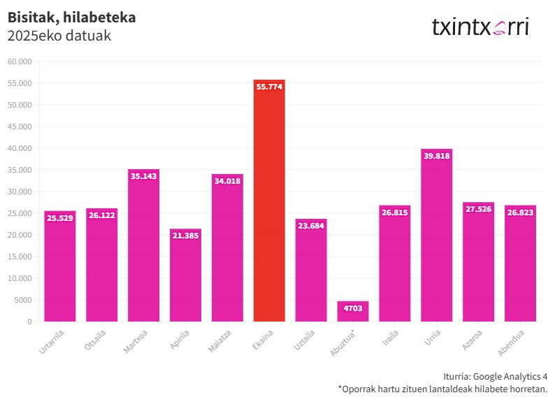 Azken urteetan ohikoa izan den moduan, mugimendu gehieneko hilabetea ekaina izan zen: Zabaleta auzoko festak, sanpedroak, Sorgin Jaiak, eragile askoren ikasturte bukaeretako ekimen eta erakustaldiak, Ttakun Kultur Elkarteak antolatu ohi dituen Gure Patxintxiak sariak... Horiek guztiak eta gehiago kontsumitze aldera 26.734 saio hasi zituzten 13.372 erabiltzailek, orotara 55.774 orrialde bisitatuta. Norabide horretan, oparoak izan ziren maiatza eta urria ere.