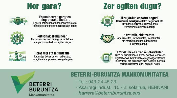 Pausoz pauso egituratu dute 2022. urte hasieran sortutako Beterri-Buruntza Mankomunitatea, guztiz operatiboa izateraino. Andoain, Astigarraga, Hernani, Lasarte-Oria, Urnieta eta Usurbil udalerrien borondatez eratutako erakundea buru-belarri ari da lurralde horretako biztanleen ongizatea areagotzeko jarduera eta zerbitzu bateratuak ematen, misio honekin: Beterri-Buruntzako egoera sozioekonomikoa indartzea. Hori horrela izanik, gure lurraldea indartzeko urrats gakoa da; bestela esanda, eskualdearen garapen integralerako motorra da eta izango da.