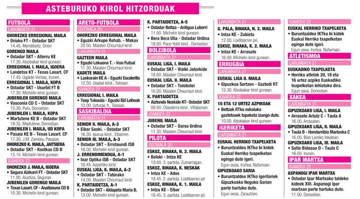 Asteburuko kirol agenda