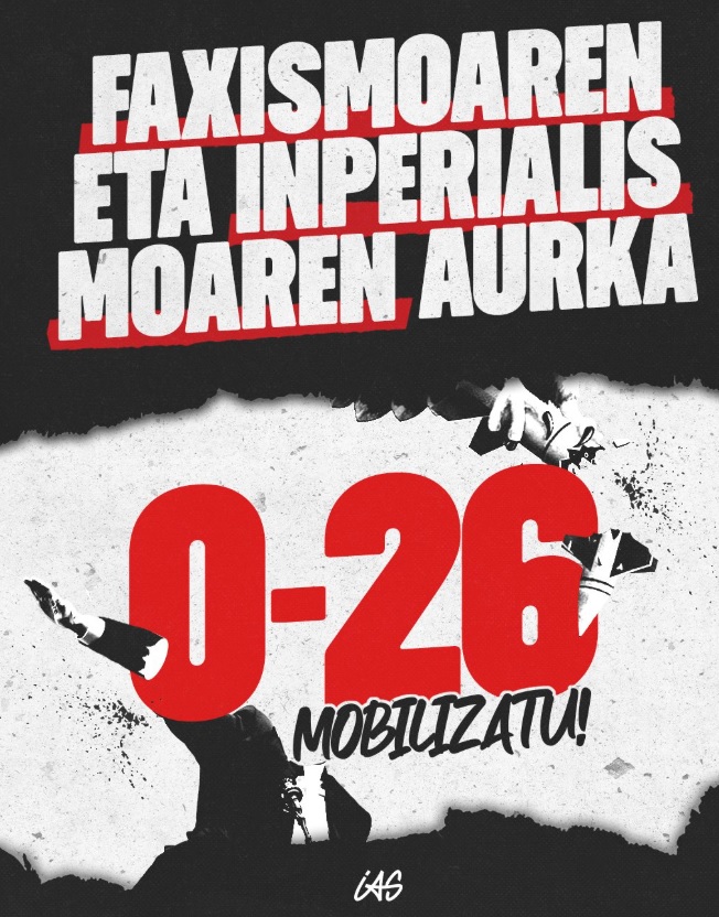 "Urtarrilaren 31an 10.000tik gora herritar mobilizatu ginen Bilbon eta Iruñean, faxismoaren eta estatuen autoritarismoaren aurka. Bizi dugun egoerak hala eskatuta deitu ziren mobilizazio hauek, faxismoa gero eta leku gehiago hartzen ari da esparru ezberdinetan eta horregatik zen garrantzitsua gure mezua ozen entzutea: Euskal Herrian milaka gara faxismoari aurre egiteko prest gaudenak. Ez dugu onartuko diktadura frankistaren gorazarrerik, Euskal Herriaren eta euskararen aurkako ideia supremazistarik, etorkinen aurkako arrazakeriarik edota emakumeak gizonen zerbitzura egon behar duela dioen diskurtso matxistarik.
