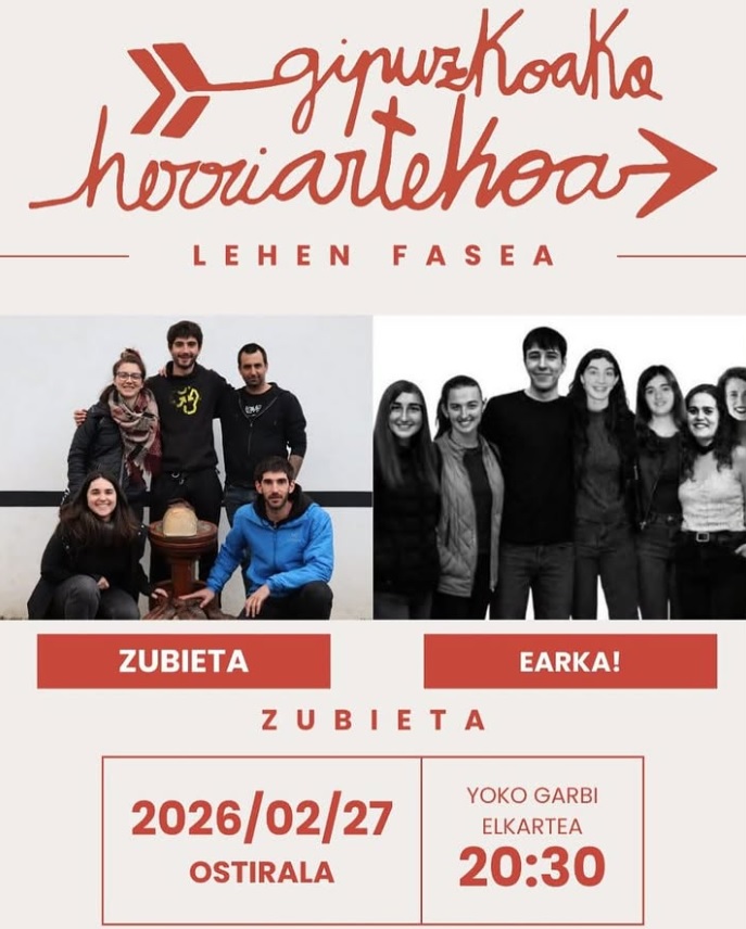 Lehenengo eta bigarren kanporaketak, finalerdiak eta finala. Horiek izango dira taldekako herriartekoko lau faseak, hilabete honetatik maiatz amaierara arte 57 taldek jokatuko dituztenak, zortzi eskualde hauetan banatuta: Buruntzaldea (horretan ariko da Earka! ), Debabarrena, Debagoiena, Donostia, Goierri, Oarso-Bidasoa, Tolosaldea, Urola eta Urola Kosta.