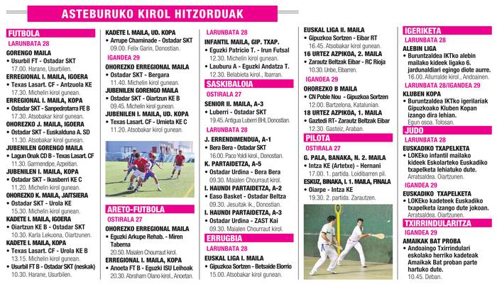Asteburuko kirol agenda