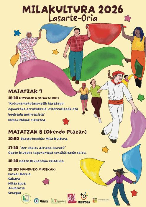 Kulturartekotasunetik, haratago: eguneroko arrazakeria estereotipoak eta begirada antirrazista mahai ingurua izango da maiatzaren 7ko lehen hitzordua, ostegunarekin. 18:30ean aurrera eramango dute, Oriarte BHIn eta Ndank Ndank elkarteko kideak izango dira hizlariak. Bizipoza taldeko lagunek azaldu dute helduei zuzendutako hitzordua dela, hau da, ikastetxeetako guraso, herritar, eta bertaratu nahi duen ororentzat.